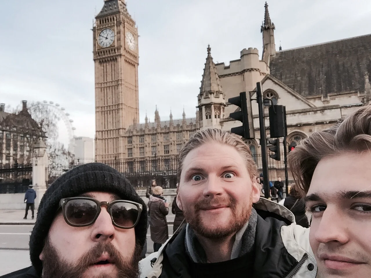We awoke the next day to start our exploration of downtown London and caught the tube to Westminster so that our Ben could meet Big Ben. We wandered around taking in the incredible architecture in the vast sea of people with selfie sticks (there were ALOT of selfie sticks). We crossed over the Westminster bridge and found a city map that had the House of Vans listed on it and decided that was obviously where we needed to head next. After getting lost and asking directions from a local bar we accidentally stumbled into an underground tunnel absolutely covered in beautiful graffiti. No House of Vans there, but Taylor was able to buy a minute of use from a locals can of spray paint for 1 pound, and crudely wrote the moniker of our fair city on the wall. After some more snooping around we found the House of Vans! However, our hears sank as we read the sign postedon the door that they would be closed until January 29th.